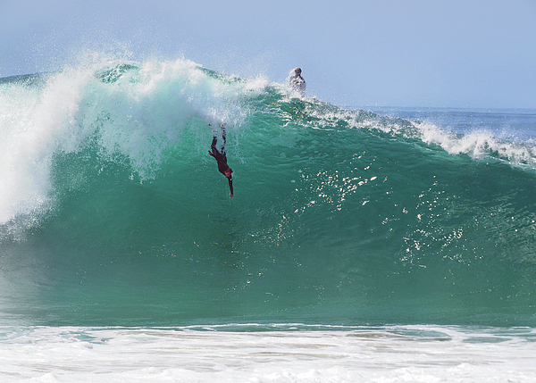 At first, I thought he was free falling and felt alarmed. Then, the colors and shapes awoke my imagination, and he appeared to be an angel departing a heavenly cloud, purposefully entering our atmosphere. Lol! I love all of the contrasts, and hope the surfer fared well. Congratulations on this dramatic capture! It's definitely a suspenseful cliffhanger!