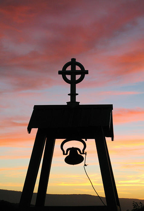 Sunset Celtic cross and the evening bell - Ascencion School, Cove Oregon. Sold: 10-23-12