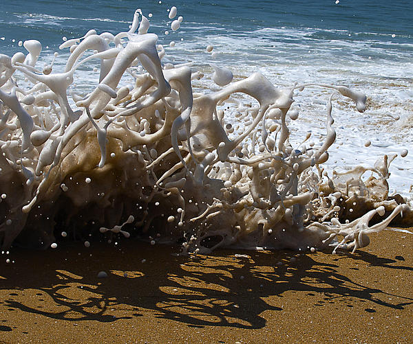This image was taken at the infamous "Wedge" at the end of Balboa Penninsula on 9-1-11. Waves were breaking 15-20', and the foam you see was surge rushing up against a 4' drop off to the shore below, created by the pounding surf.