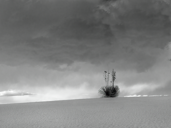 A lone yucca prepares to defy the oncoming late afternoon downpour in White Sands New Mexico.