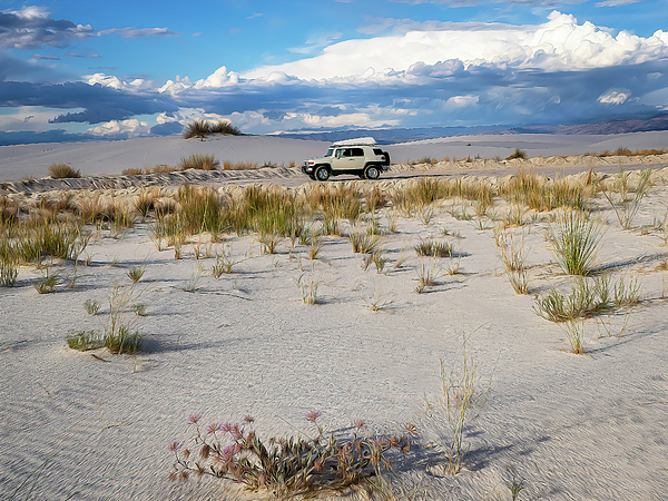 A dreamy late afternoon look at White Sands New Mexico. While my better half takes a break in the truck, I turn to take this shot. The places that 4x4 has taken us!